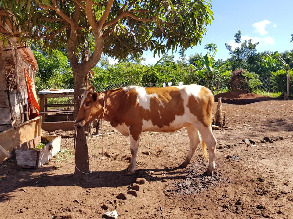 Hier ist schonmal vorab die allerschönste Kuh Ugandas, unsere Betty Blumenbunt, die wir vor drei Tagen auf ganz abenteuerliche Weise eingekauft haben.