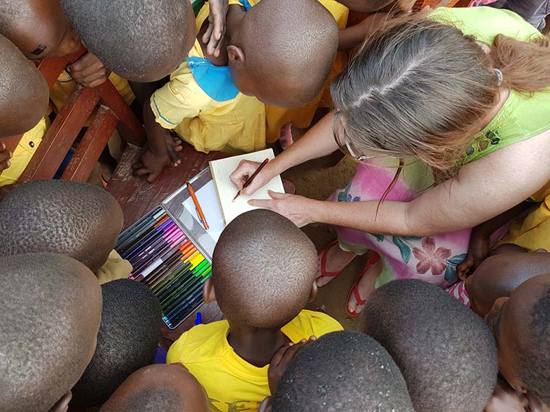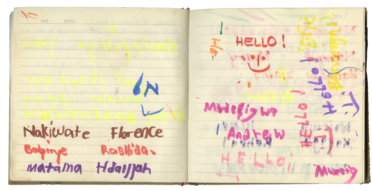 Am Vormittag sehen wir die Kinder fröhlich spielen. Dann hat Raphaela die Idee, dass jedes Kind einen Gruß in unser Tagebuch schreiben soll. Im nu haben wir wieder einen Kinderauflauf verursacht. Die Kinder haben viel Spaß beim Ausfüllen von fünf Seiten unseres Tagebuches.