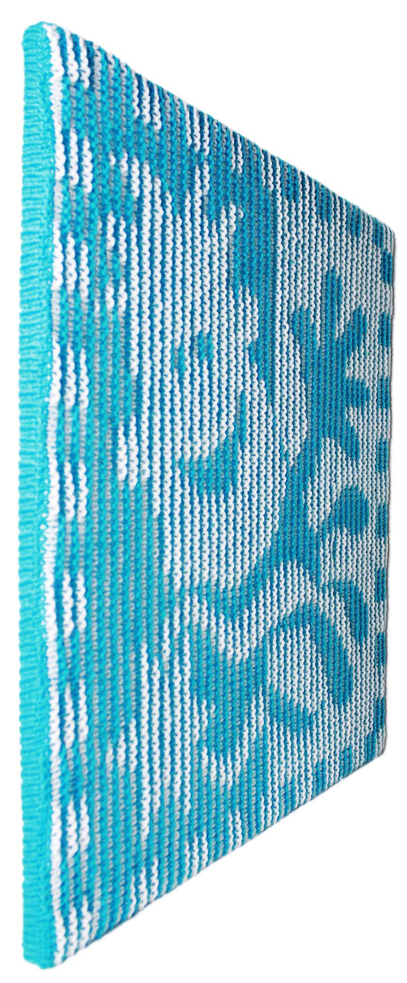 Strickst du das Motiv aus einem Garn mit einer Lauflänge von ca. 133 m / 50 g, dann wird ein Bild ca. 50 cm x 50 cm groß. Es eignet sich gut, um auf einen entsprechend großen Keilrahmen aufgezogen und an die Wand gehängt zu werden. Die Erklärung für den gestrickten Rand und wie du das Bild auf dem Keilrahmen befestigst, ist ebenfalls in der Anleitung enthalten. Ohne den angestrickten Rand könntest du auch ein Sofakissen daraus arbeiten. Dafür eignet sich besonders das neutrale Motiv "STERNE" als Kissenrückseite.