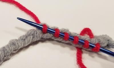 Bild 6) Wenn du die gewünschte Anzahl an Strickmaschen erreicht hast, dann kannst du in die Höhe weiterstricken.